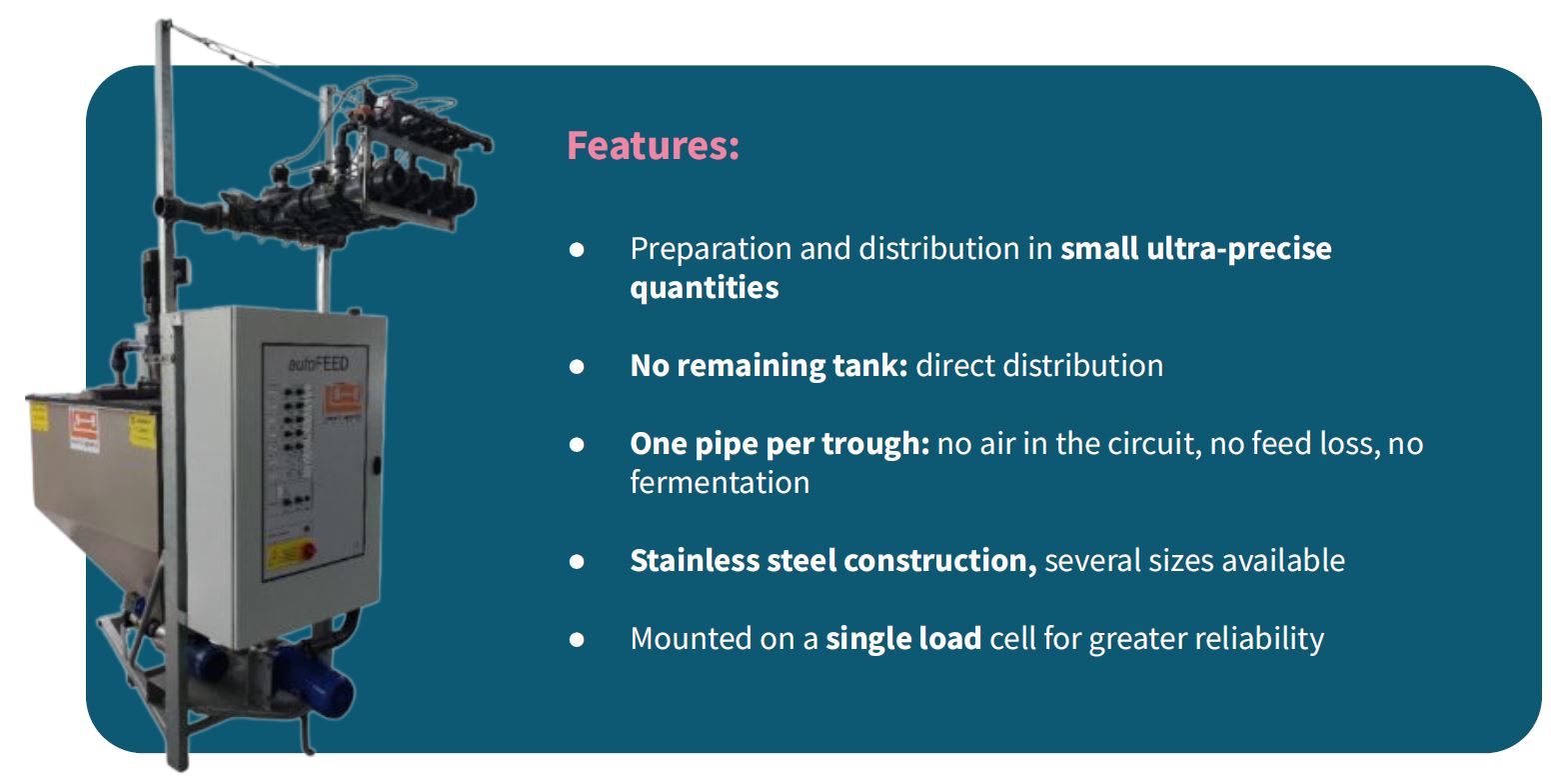 The result: an automatically controlled feeding system, with no losses or leftovers, guaranteeing a high level of hygiene and optimized feed management.
