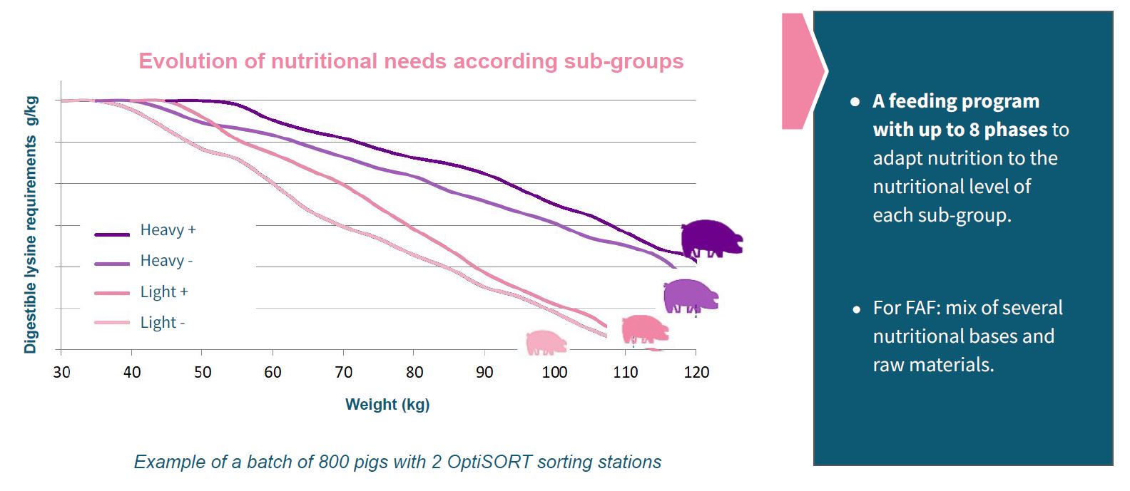Connected to OptiSORT sorting, it allows for automatic adjustment of feeding transitions based on the actual weight and growth of animal subgroups.