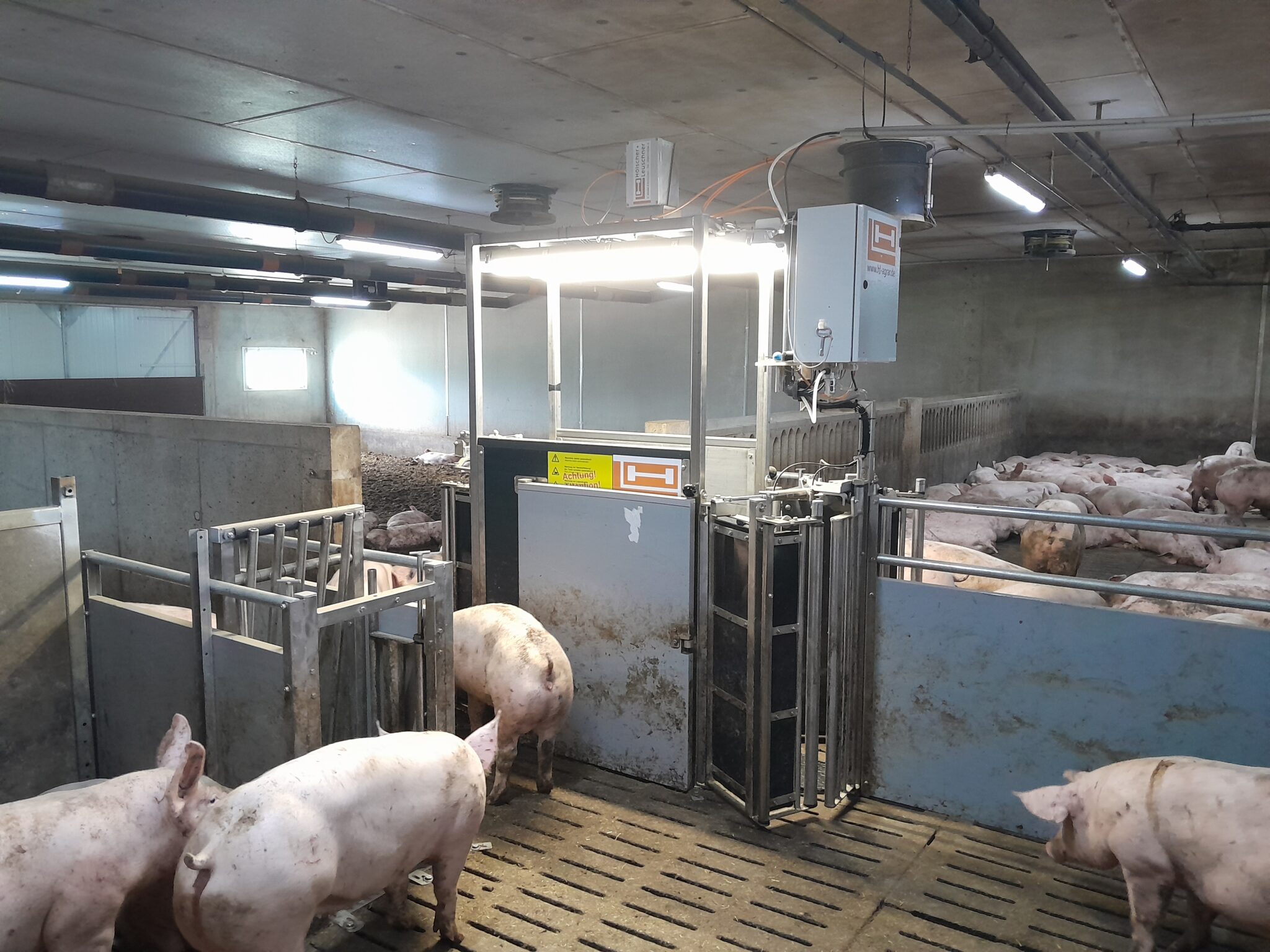 Station capable of accommodating up to 450 pigs for sorting operations, both for feeding and for departure to the slaughterhouse.